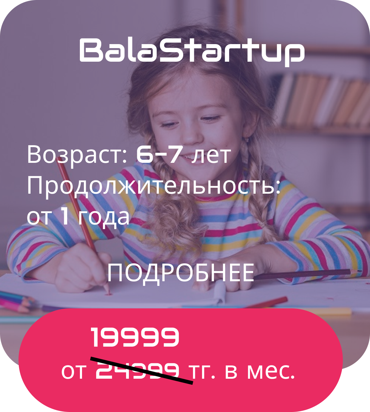 Длительность: от 1 года до 2-х лет Количество занятий в неделю: 2 Длительность занятий: 2 академических часа Возраст: 6-7 лет Стоимость стандартного пакета в месяц: 19999 - 44999 тг. Стоимость VIP пакета в месяц: 99990 - 2999990 тг.