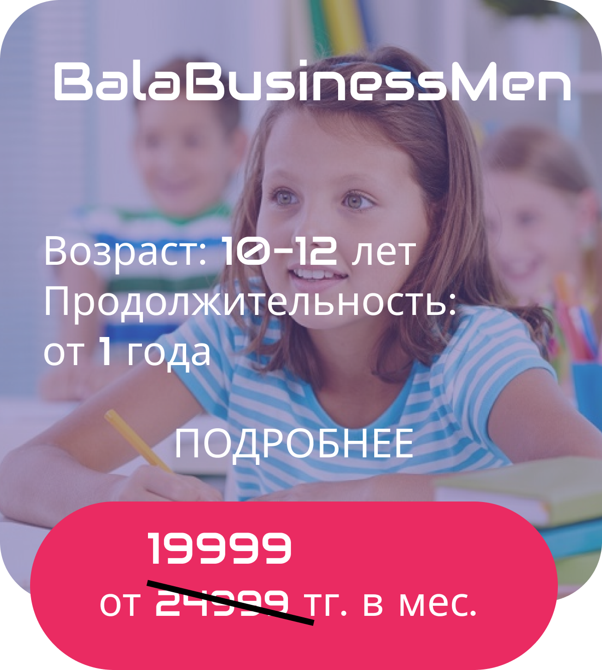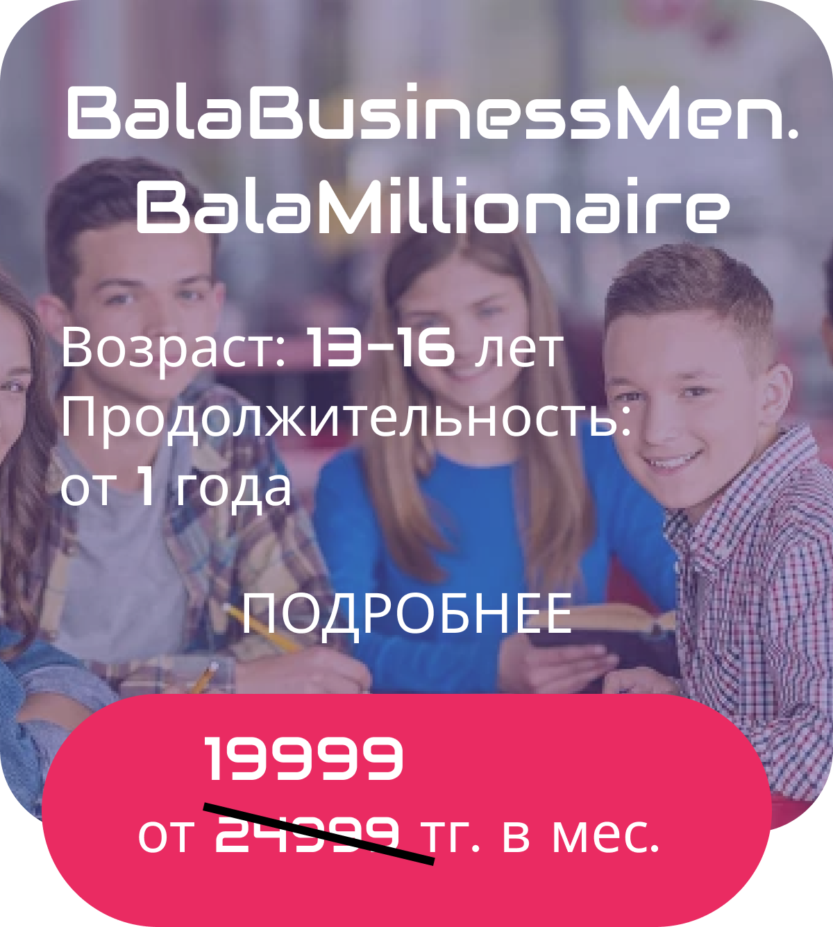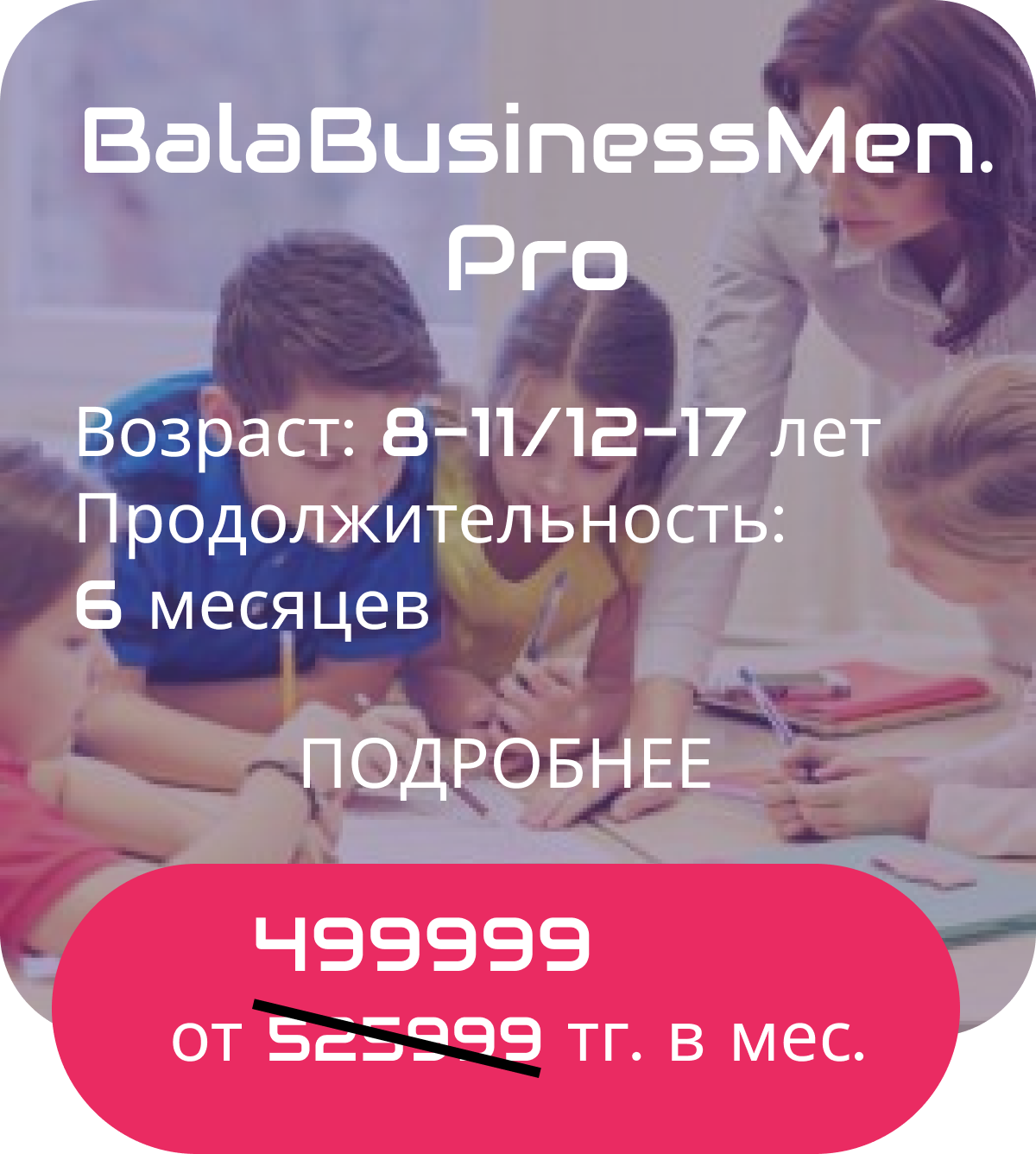 Длительность: 6 месяцев Количество занятий в неделю: 2 Длительность занятий: 2 академических часа Возраст: 8-11/12-17 лет Стоимость стандартного пакета в месяц: 499999 тг. Стоимость VIP пакета в месяц: 1499990 тг.