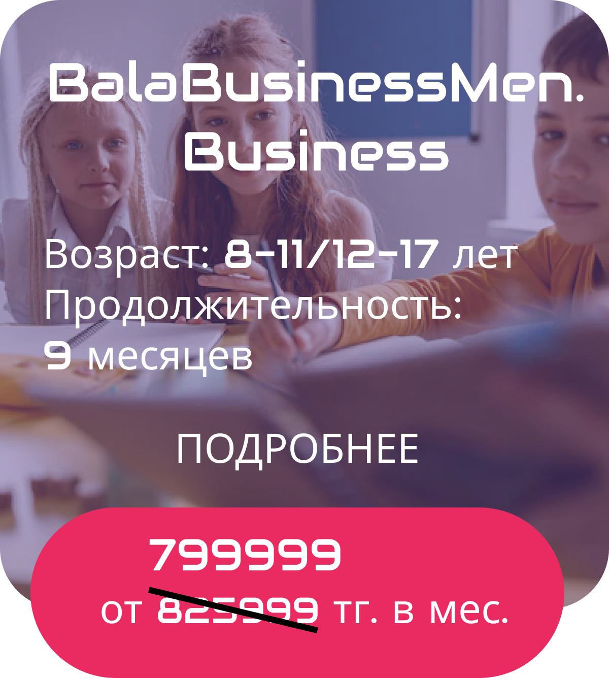 Длительность: 9 месяцев Количество занятий в неделю: 2 Длительность занятий: 2 академических часа Возраст: 8-11/12-17 лет Стоимость стандартного пакета в месяц: 799999 тг. Стоимость VIP пакета в месяц: 1899990 тг.